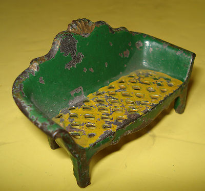 Title (ebay affiliate link): OLD Antique KILGORE CAST IRON Dollhouse Furniture GARDEN LOVE SEAT COUCH SOFA nr