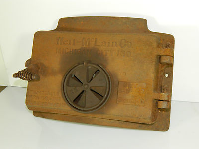 Antique Iron Furnace Door Salvage Industrial Machine Age Modern Repurpose Reuse