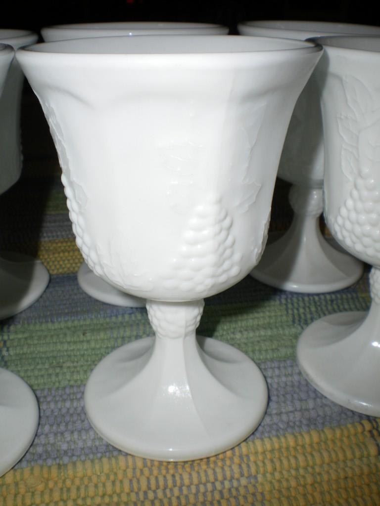 INDIANA MILK GLASS FOOTED TUMBLERS SET OF 6 HARV. GRAPE