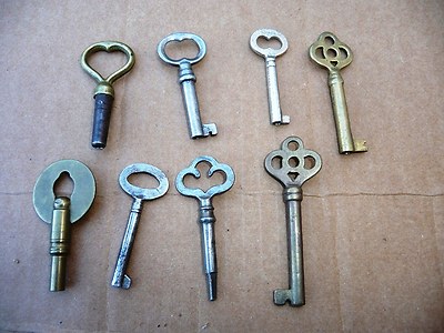 Title (ebay affiliate link): Lot of Small Antique Skeleton Trunk China Cabinet Clock Watch Keys