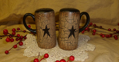 Title (ebay affiliate link): PRIMITIVE NOT WOOD SALT & PEPPER SHAKER TAN CRACKLE STAR HOUSE COUNTRY DECOR