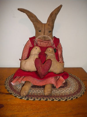 Title (ebay affiliate link): PRIMITIVE HANDMADE RABBIT DOLL WITH CHICKS AND A HEART BUNNY
