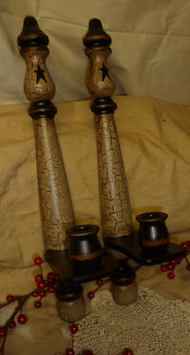 Title (ebay affiliate link): PRIMITIVE OLD WOOD SPINDLE WALL SCONCE CANDLE HOLDERS TAN CRACKLE COUNTRY DECOR