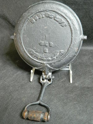 Round Antique Cast Iron 8x9 Waffle Iron | Hinged Handle | Pat Date 1890s
