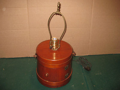 Title (ebay affiliate link): country primitive OLD WOODEN FIRKIN Made into a LAMP with Secret Stash door