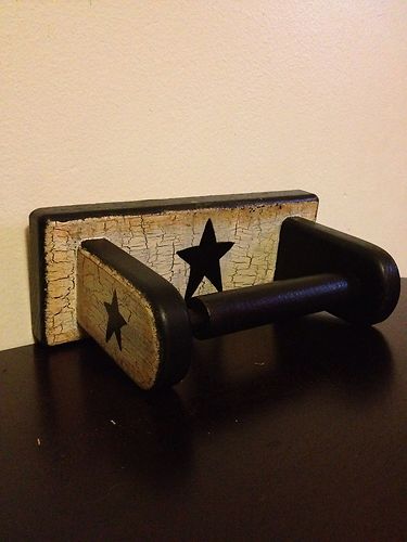 Title (ebay affiliate link): Primitive Wooden Toilet Paper Holder/ Crackle/ Country Star