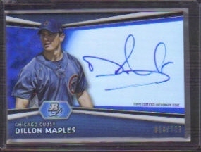 Title (ebay affiliate link): DILLON MAPLES 2012 BOWMAN PLATINUM BLUE REFRACTOR CUBS ROOKIE RC AUTO 13/199 SP