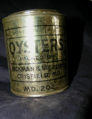 Pint sz . Hickman & Sterling, Crisfield Md. Oyster Tin.-Fair Condition