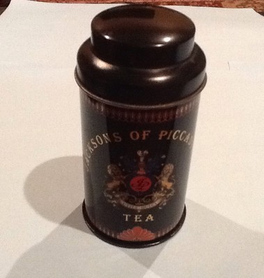 RARE VINTAGE 1960'S TEA CANISTER JACKSON OF PICCADILLY BLACK TIN CAN