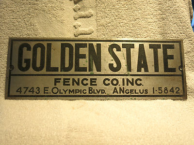 Title (ebay affiliate link): VINTAGE GOLDEN STATE FENCE CO. METAL SIGN LOS ANGELES CALIF.