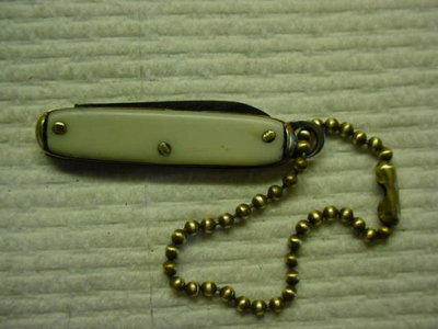 Title (ebay affiliate link): Vintage Miniature Knife Keychain Brass Bolsters/Brass Lined USA