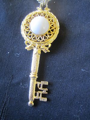 Title (ebay affiliate link): Vintage Pendant Necklace KEy Shaped on Double Chain with Beads