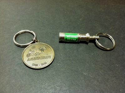 Title (ebay affiliate link): TWO VINTAGE BATAVIA DOWNS NY HARNESS RACING KEYCHAINS