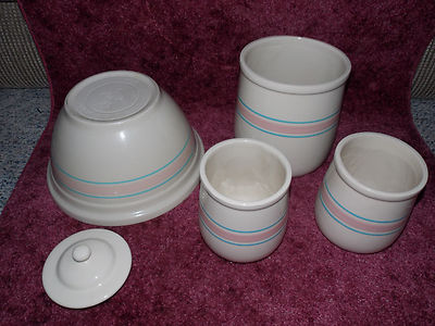 McCoy Pottery, Bowl, Cream, Stripes, Canisters, Lids