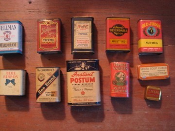 VINTAGE LOT ADVERTISING SPICE TINS,OLD JUDGE,WELLMAN,BEE BRAND,HOLLYWOOD,TEMPLE