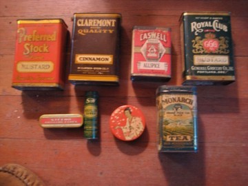 Title (ebay affiliate link): VINTAGE LOT ADVERTISING LARGE SPICE TINS,MONARCH TEA,ROYAL CLUB,CASWELL,MUSTARD
