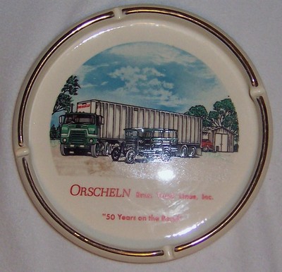 Title (ebay affiliate link): RARE Vintage ORSCHELN Bros. Truck Lines Trucking Large Porcelain Ashtray