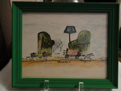 Title (ebay affiliate link): VINTAGE COVERED CHUCK WAGON HORSE RIDER PURINA DOG CHOW ORIGINAL PAINTING '74