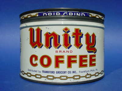 Title (ebay affiliate link): RARE VINTAGE "UNITY COFFEE" TIN, KEY-WIND, FRANKFORD GROCERY, PHILA, PA. BEAUTY!