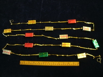 Title (ebay affiliate link): Vintage Mercury Glass Garland Bead Ornament 108" w/Presents Gold Red Green A20B