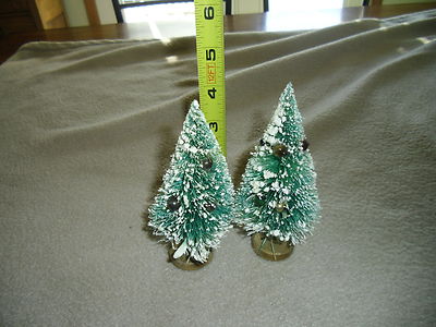 Title (ebay affiliate link): Lot of 2 Green Bottle Brush trees with colored decorations. 4 " Japan