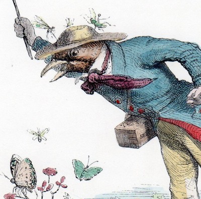 Title (ebay affiliate link): 1842 GRANDVILLE - THE BUTTERFLY COLLECTOR - Lepidopterist -Hand Col Engraving