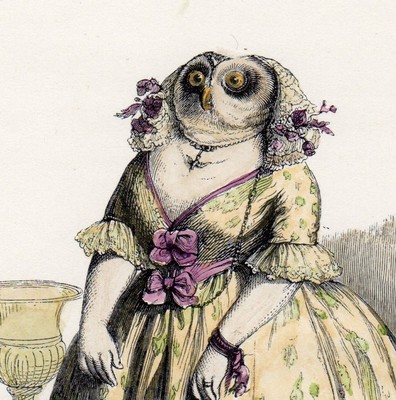 Title (ebay affiliate link): 1842 GRANDVILLE - THE REGAL MADAM OWL - Madam - Hand Colored Engraving