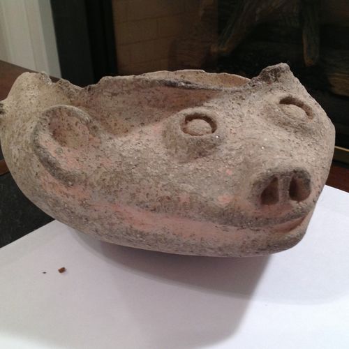Title (ebay affiliate link): Pre-columbian Zoomorphic Bowl Unbaked Terra Cotta Western Mexico Bats Head?