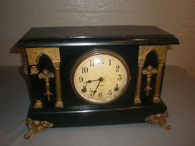 Title (ebay affiliate link): Antique Sessions mantel/shelf clock, greek columns, works fine