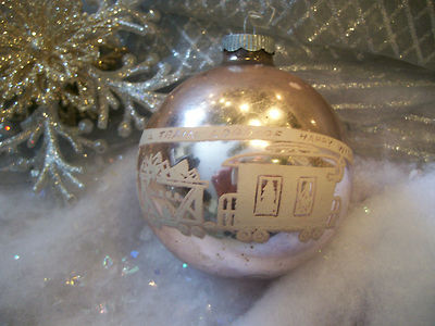 Title (ebay affiliate link): Vtg Shiny Brite Stencil Scene Jumbo Ornament Railroad Santa express Pink Rare