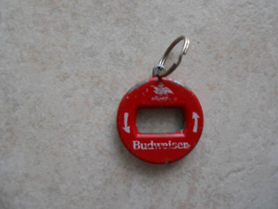 Title (ebay affiliate link): VERY NICE VINTAGE BUDWEISER BOTTLE OPENER, ROUND WITH KEYCHAIN & MADE IN CANADA