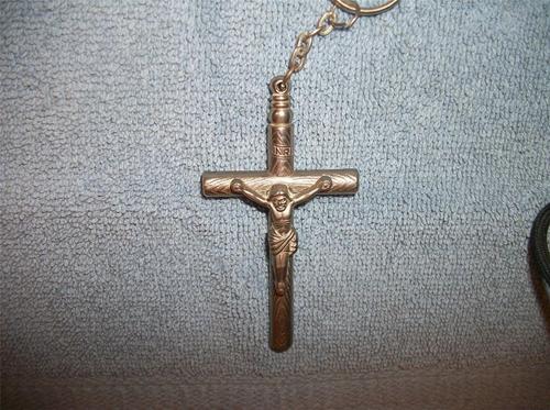 Title (ebay affiliate link): Vintage Catholic Cross Key-chain With Loud Security Whistle