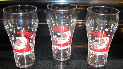 Title (ebay affiliate link): 3 Libbey Christmas Holiday Coke Coca Cola Glasses Santa Claus Beverage Barware