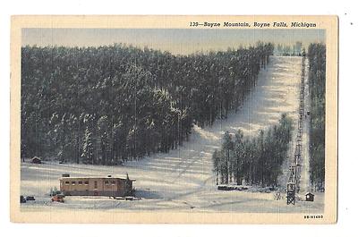 Title (ebay affiliate link): 1940's Linen Unused Postcard-Boyne Mountain,Boyne Falls,MI/Skiing/Ski Chair Lift