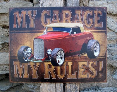 Title (ebay affiliate link): Vintage Style My Garage Retro Metal Sign Muscle Car Ad Man Cave Decor Gift USA