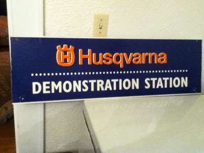 VINTAGE HUSQVARNA CHAINSAW DEMO. STATION SIGN! 2 SIDED