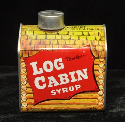 Title (ebay affiliate link): Vintage Towle's Log Cabin Syrup Tin Litho Container Bank Excellent NOS