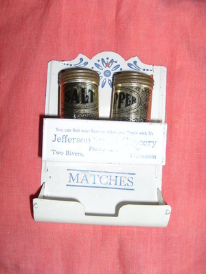 Title (ebay affiliate link): Vintage Advertising Tin Match/Salt & Pepper Holder