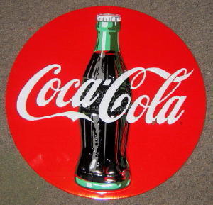 EMBOSSED COKE BUTTON METAL SIGN NR