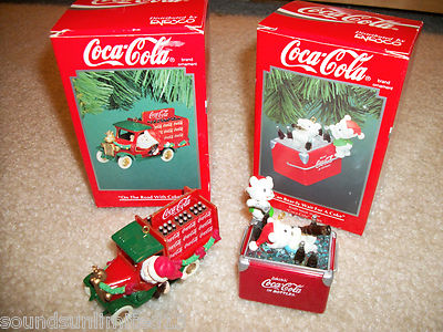 Title (ebay affiliate link): 2 ENESCO COCA COLA CHRISTMAS ORNAMENT SANTA+POLAR BEAR ADVERTISE COKE BOTTLE