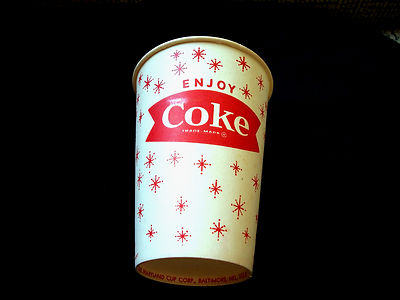 Title (ebay affiliate link): VINTAGE 1950S COKE WAXED PAPER CUP 7 OZ. NEW OLD STOCK, MINTY "DRINK-ENJOY!"