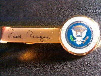 Title (ebay affiliate link): Presidental tie clasp and one cuff link signed Ronald Reagan