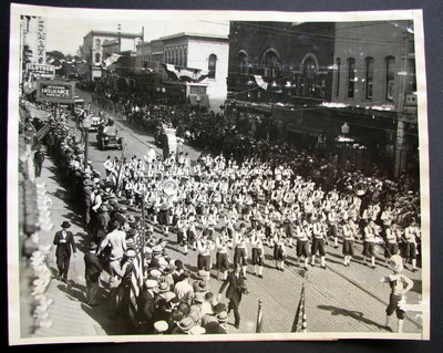 Title (ebay affiliate link): 1928 GOV ALFRED E SMITH, SEDALIA, MO, MOTORCADE LED BY BOYS BAND, PRESS PHOTO