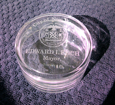 Mayor Ed Koch, City of New York Tiffany Glass jar with lid. RARE! Political Gift