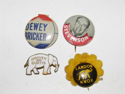 Lot Of 4 Political Pins Bricker Landon Knox Stevenson Hoover & Curtis *Lot D-31