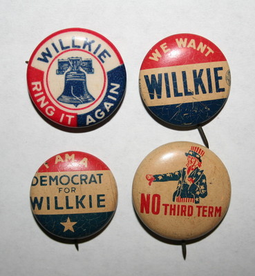 Title (ebay affiliate link): 1940 Willkie vs. Roosevelt President Campaign Button Political Pinback Pin Lot 4