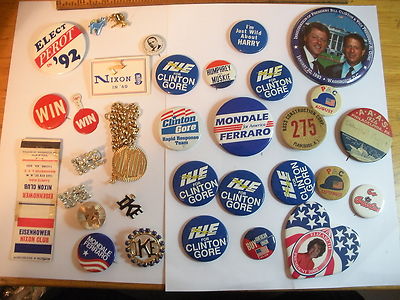 Title (ebay affiliate link): VINTAGE POLITICAL BUTTONS AND JEWELRY LOT IKE NIXON DOLE GORE