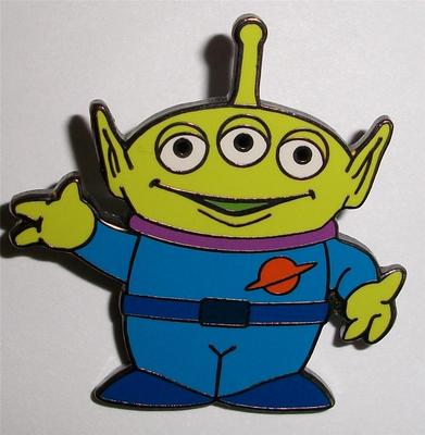 Title (ebay affiliate link): Disney Pixar Toy Story Alien Little Green Men Man Waving Large Pin RETIRED
