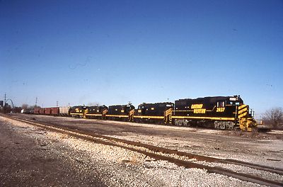 Gateway Western GP38 # 2037 with leased PREX GP16s @ ESTL,IL 12/05/1996