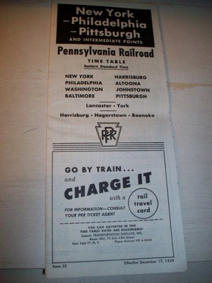 Title (ebay affiliate link): New York Philadelphia Pittsburgh Pennsylvania Railroad Time Table Vintage